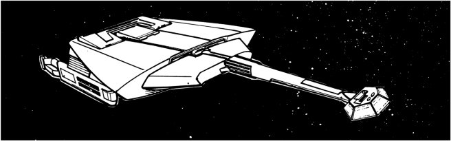 Mounting four KD-8 and four KF-10 disruptors firing into the forward arc, the L-9A could deliver a devastating blow at close range; the KD-10 has an offensive range of only 60,000 km, however, and this forced the vessel to close with enemies to deliver its full punch, a drawback that made the L-9A an unpopular vessel, The new KSP deflector shield, using a trinary trans- former to deliver maximum shield strength at one-third the